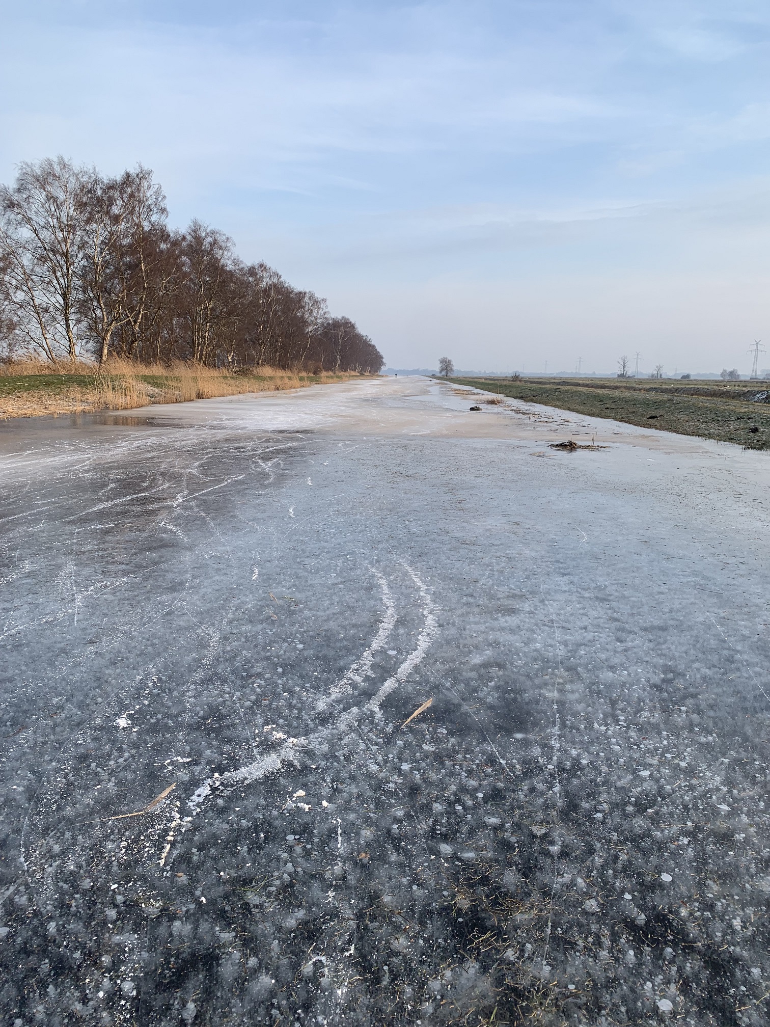 Es gibt zwar schönes Schlittschuh-Eis im Blockland, aber es ist bei weitem nicht fest genug, um eine große Anzahl von Menschen zu tragen.